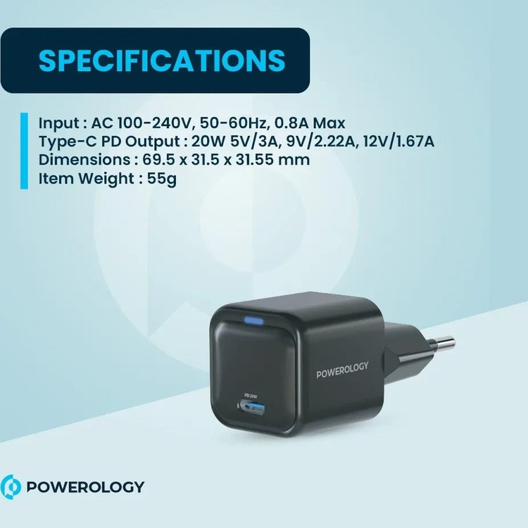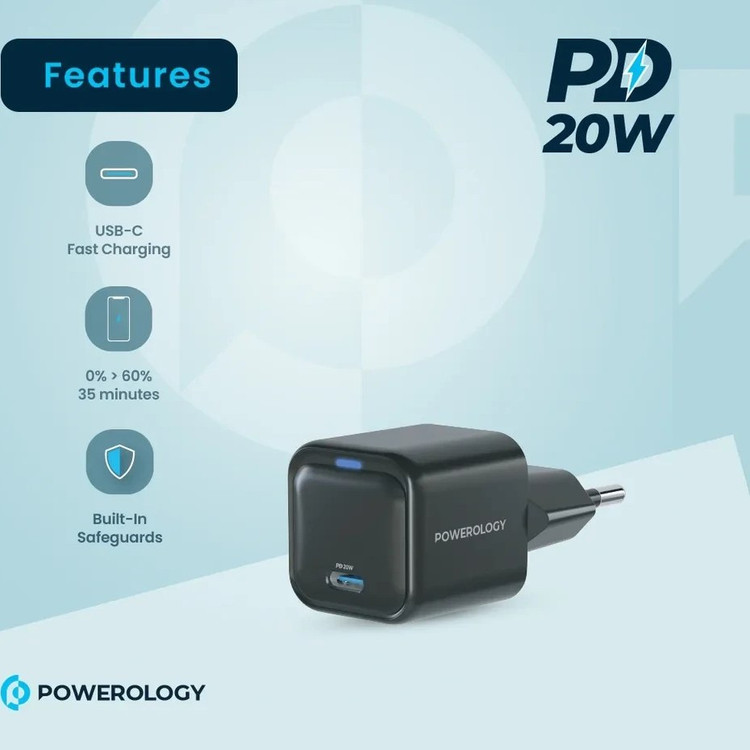 شارژر دیواری پاورولوژی مدل Ultra-Compact GaN Charger PWCUQC016 توان 20 وات