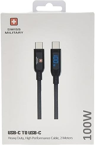 Swiss Military Type C to Type C 2M 100W Premium Braided Cable, Super Fast Charging Type C Phone, Laptop,MacBook Pro, Air Thunderbolt, Samsung Galaxy Pixel LG Android PS5 Black, SM-CB-CC100W-BLK