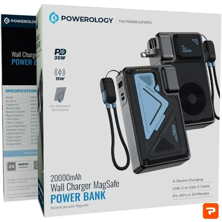 Powerology PPBMH104 20000mAh MagSafe Wireless Power Bank with Built-in Wall Charger